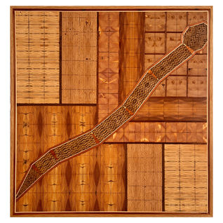 Jim Kearns creates abstract geometric compositions from salvaged wood, using natural grain patterns and growth rings as his medium. His work explores balance, symmetry, and transformation, revealing the harmony between organic form and design. Each piece invites reflection on renewal and the spirit found within reclaimed lumber.